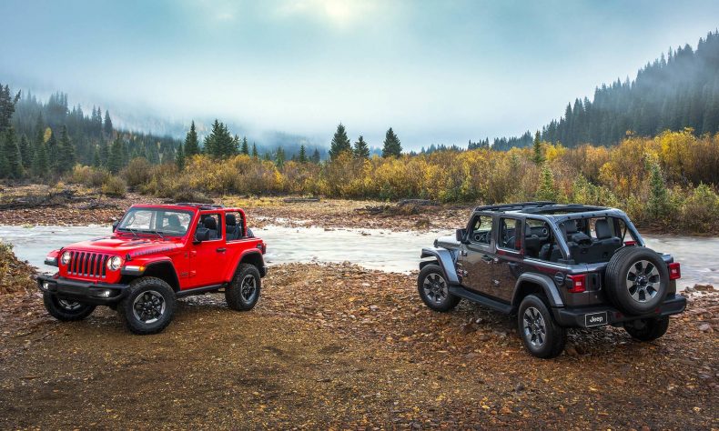 2003年,Jeep首次推出牧马人车型,后轴采用了可以通过按键锁止差速器的Dana 44车桥,传动比为4:1的Rock-Trac分动箱,以及后轮盘式刹车、底盘防护板等。2004年,Jeep推出了长轴距版的牧马人,命名为Unlimited。2005年,Jeep又推出轴距加长、但越野能力等同于牧马人Rubicon车型的Rubicon Unlimited。